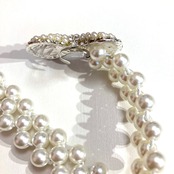パールをゴムで繋いでいるので伸縮します。キラキラリボンにサークル上品パールのバックルが可愛い飾り紐です。