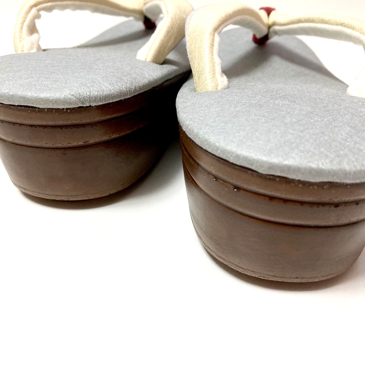 クラリーノの人工皮革を使用した草履です。クッション性があり疲れにくいです。通常のウレタン草履よりヒールが高めなので、スタイルアップにもなります。