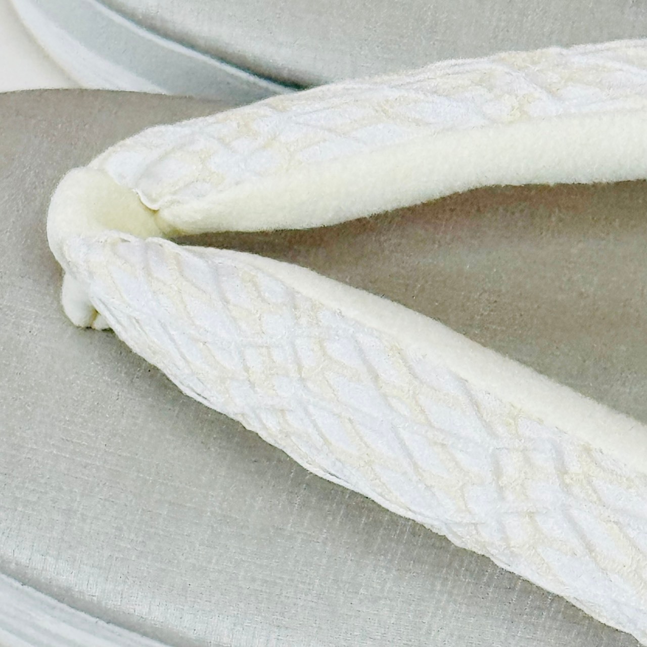 シルバーの天と巻でシンプルかと思いきや、柔らかさを持った立体的な鼻緒。コッソリと大人可愛いらしいデザインとなっています。