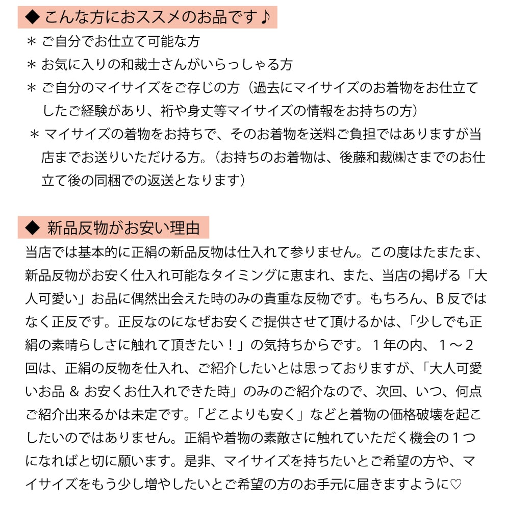 *お仕立ては「(株)後藤和裁」さまをお勧めいたします。