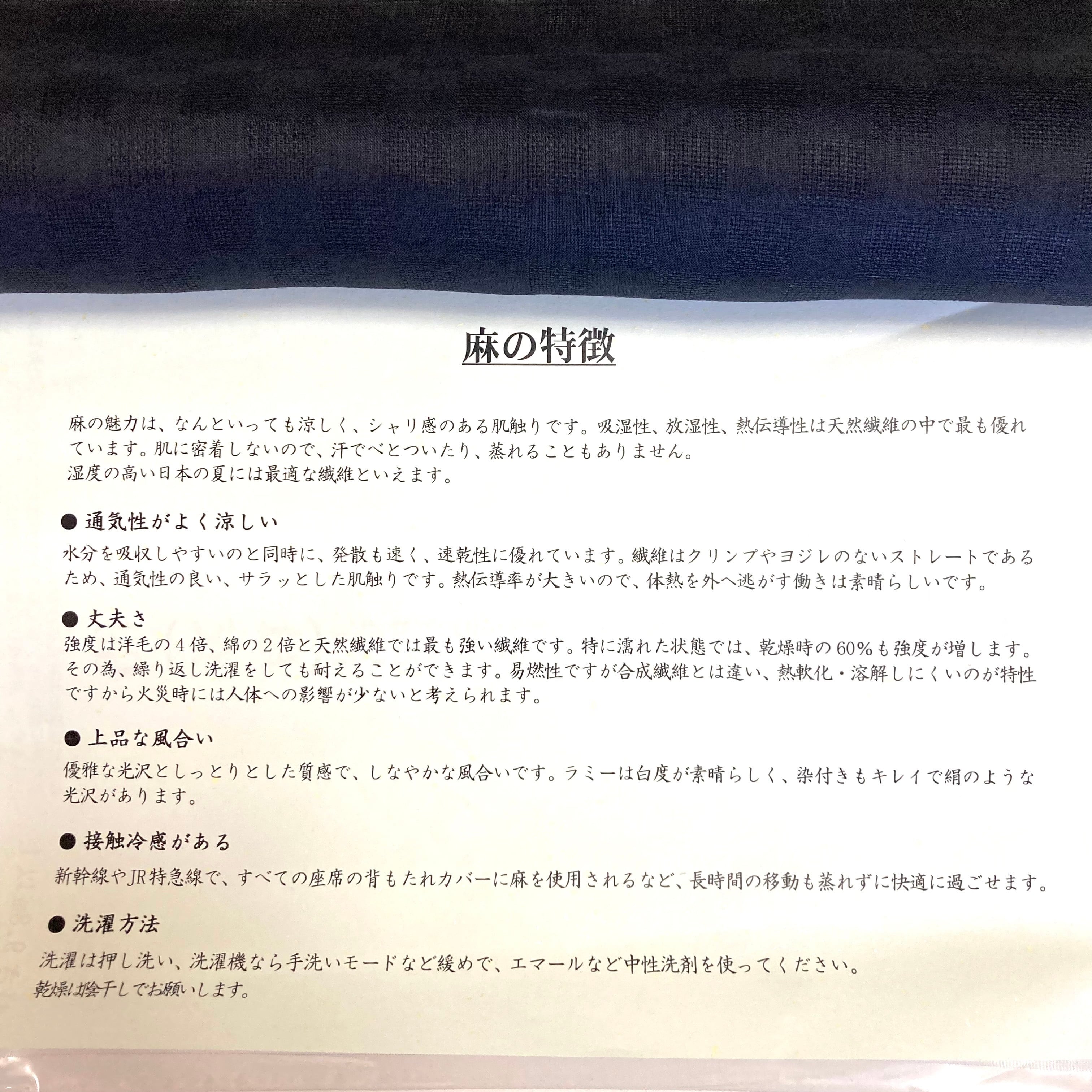 麻で有名な滋賀麻です。ハリがありながらも、しなやかな風合いでさらっとした肌心地。